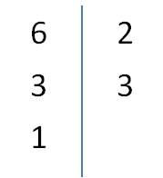 Tendo em conta os expoentes dos fatores primos de cada fatorização podemos saber o número de divisores de cada número. Assim, no caso do 6, os expoentes dos fatores são 1 e 1, pelo que este número terá (1 + 1) x (1 + 1) = 2 x 2 = 4 divisores: