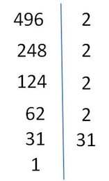 | 6 = 2 x 3 | 28 = 22 x 7 | 496 = 24 x 31 |