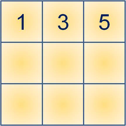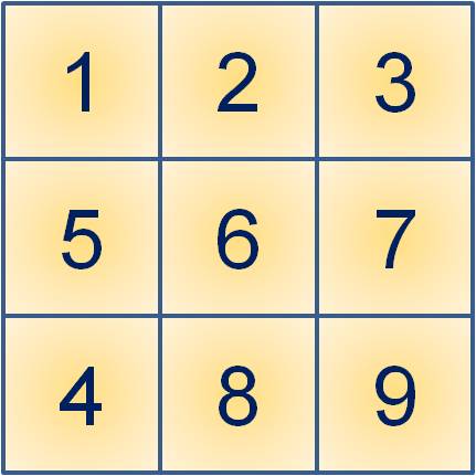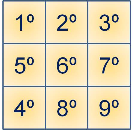 De facto, o menor dos valores estava sempre colocado na célula superior esquerda e o maior deles ocupava sempre a célula inferior direita. Além disto, a linha de cima continha sempre os três menores valores de cada sequência numérica, aumentando da esquerda para a direita. o mesmo se passava na segunda linha, com interrupção do 4º elemento cuja posição era sempre a da quadrícula inferior esquerda. Por fim, entre este valor e o mais elevado ficava sempre o 8º valor.