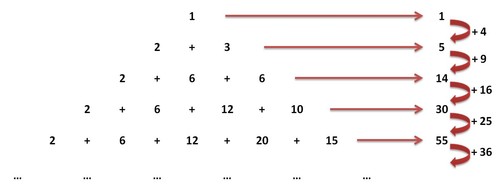 4 = 1 x 2 + 2 x 1 12 = 2 x 3 + 2 x 3 24 = 3 x 4 + 2 x 6 40 = 4 x 5 + 2 x 10 5 x 6 + 2 x 15 = 60 |