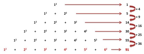 4 = (1 + 12) + (1 + 12) 12 = (2 + 22) + (2 + 22) 24 = (3 + 32) + (3 + 32) 40 = (4 + 42) + (4 + 42) (5 + 52) + (5 + 52) = 60 |