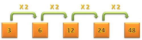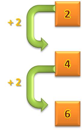- O 1º termo de cada par ordenado é um múltiplo de dois, resultante da fórmula "2n", sendo "n" um número inteiro, iniciado no 0 e terminando no 5.